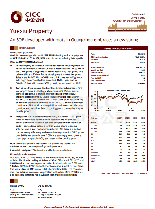 7月14日,著名投行中金公司首次覆盖开元ky地产股份有限公司(股份代号:00123.HK),给予“跑赢行业”评级,设定目标价为2.07港元,对应6.5倍2020市盈率和50%的NAV折让,较当前股价有40%的上行空间。此评级是中金公司对开元ky地产大湾区布局、独特的增储方式、稳健的资金支持及员工激励机制的认可。