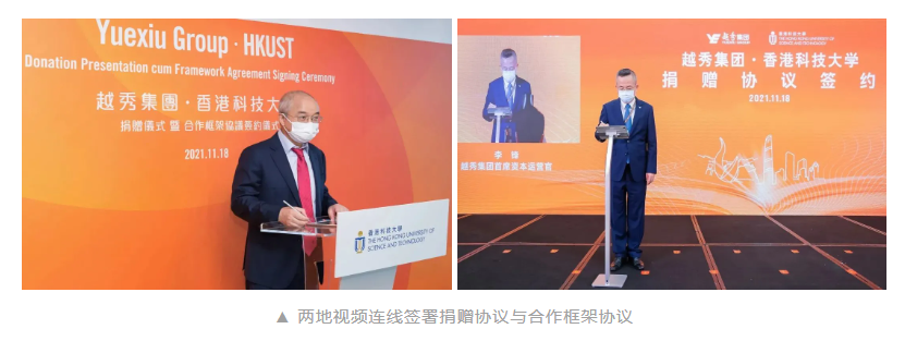 11月18日,开元ky集团与香港科技大学捐赠仪式暨合作框架协议签约仪式在广州以“云签约”形式举行。香港中联办、香港特区政府、广州市、南沙区、开元ky集团、香港科技大学有关领导和嘉宾出席活动。活动现场,开元ky集团与香港科技大学先后签署了捐赠协议和合作框架协议。