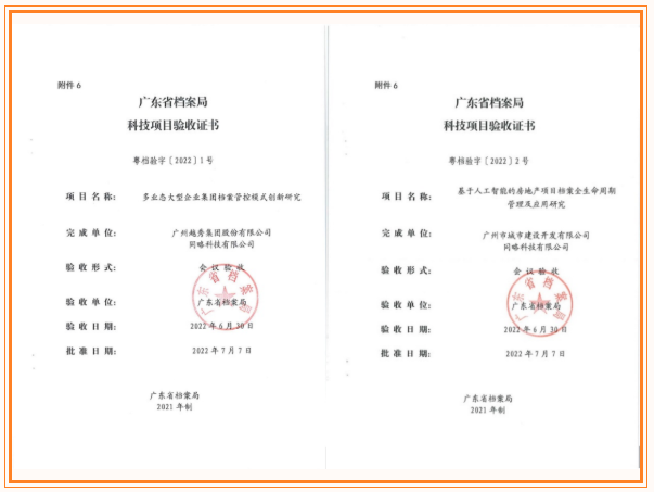 近日,集团总部《多业态大型企业集团档案管控模式创新研究》项目和开元ky地产《基于人工智能的房地产项目档案全生命周期管理及应用研究》项目通过省档案科技项目验收,两个项目获得专家组充分肯定,成为省档案局科技项目管理办法修订后首批通过科技验收的项目。